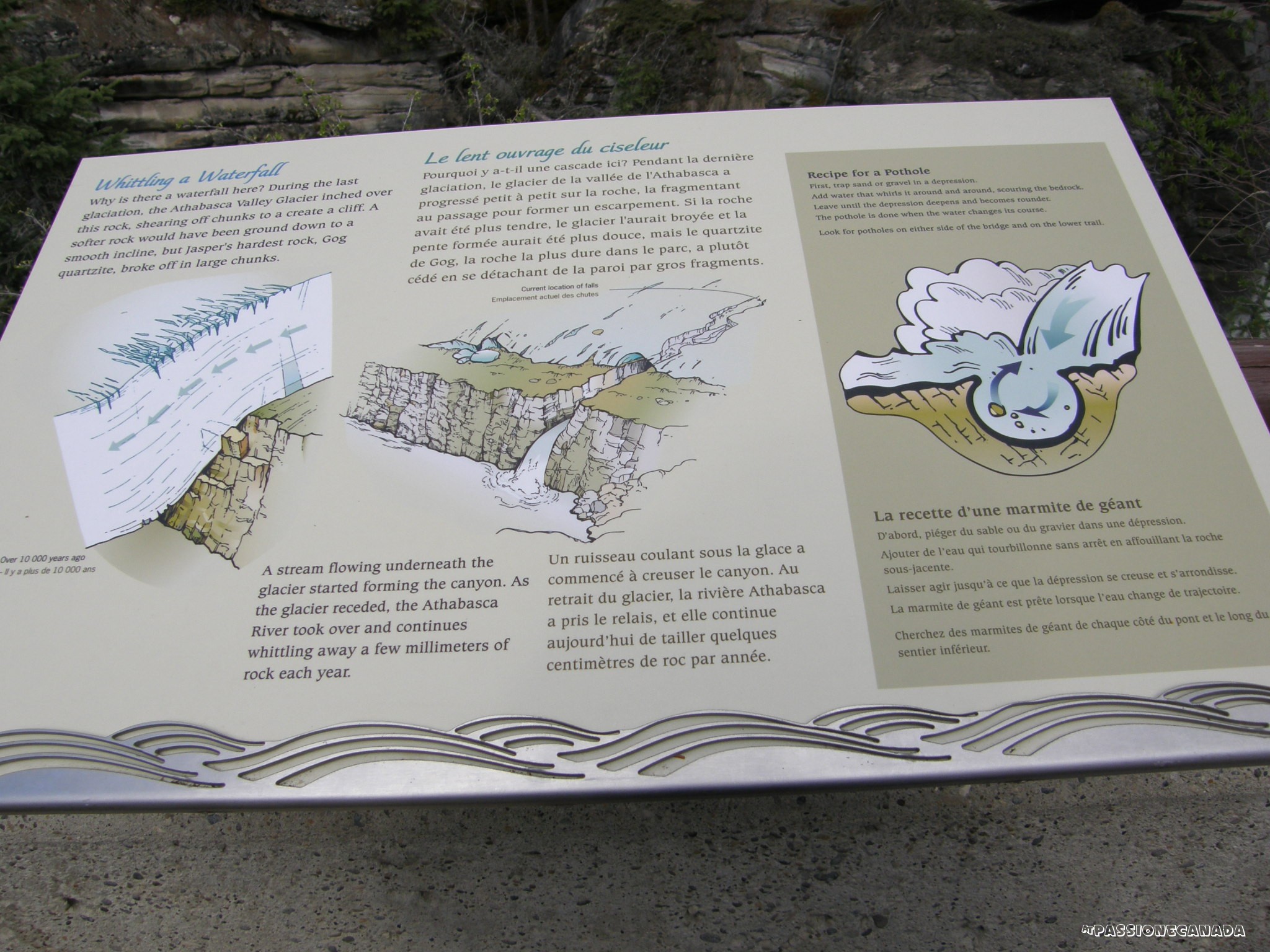 Scorrendo le mappe, da qui a Jasper, la strada offre diversi luoghi panoramici dove fermarsi per ammirare le fantastiche montagne rocciose. Vi soglio segnalare due luoghi particolari, entrambi che hanno a che fare con la forza delle acque impetuose.