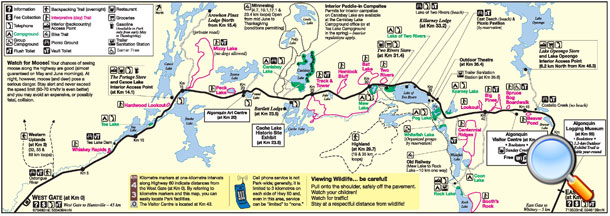 Facendo riferimento a quanto detto sopra, l’accesso è alla WEST GATE, ( KM 0), vicino alla cittadina di DWIGHT (ON), dove incontrerete il classico “casello”, dove è possibile chiedere informazioni su tasse, permessi, e tutto quanto vi serve per visitare il parco.