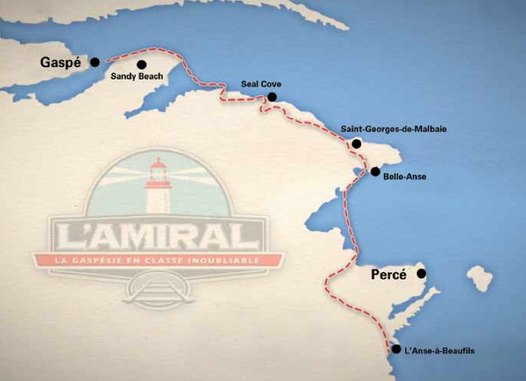Si tratta di un treno allestito di tutto punto per poter godere al meglio delle meraviglie che la penisola della Gaspèsie mette a disposizione, sfruttando la ferrovia per raggiungere zone che normalmente non sono visitabili, passaggi suggestivi da cartolina. Come si vede nella pagina facebook dell'Amiral, o dal video promozionale che ho messo sopra, molti passaggi sono veramente mozzafiato.