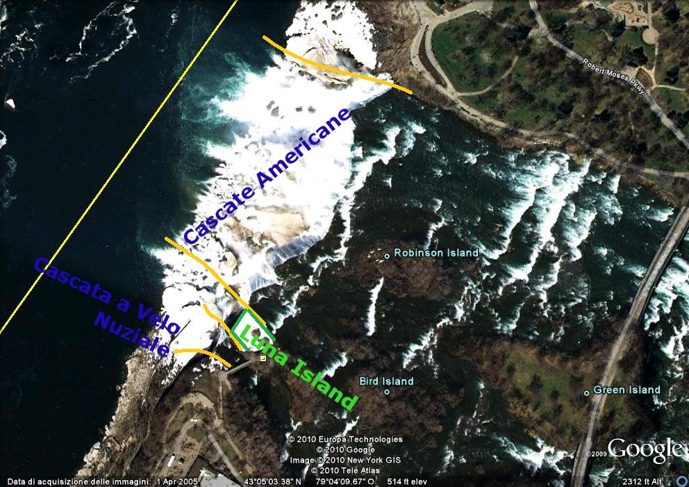Il lato americano invece, ricevendo meno acqua, non è soggetto alla stessa erosione delle cascate canadesi, si sono stimati circa 1 cm per anno. Soffrono però di un altro tipo di problema. Negli anni ’70 furono portati a termine dei lavori di manutenzione, costruendo una diga temporanea per metterle in secca. Questo è stato necessario perché le rocce della cresta delle cascate erano intarsiate di crepe dette “a nido d’ape”, che facevano trafilare pericolose infiltrazioni nel terreno, soprattutto nei periodi di gelo/disgelo, contribuendo lo smottamento di grossi massi rocciosi. Addirittura la “Luna Island” fu chiusa al pubblico per un sospetto di cedimento. In data odierna, dopo la messa in sicurezza, possiamo godere in piena tranquillità, tutta la loro maestosità.