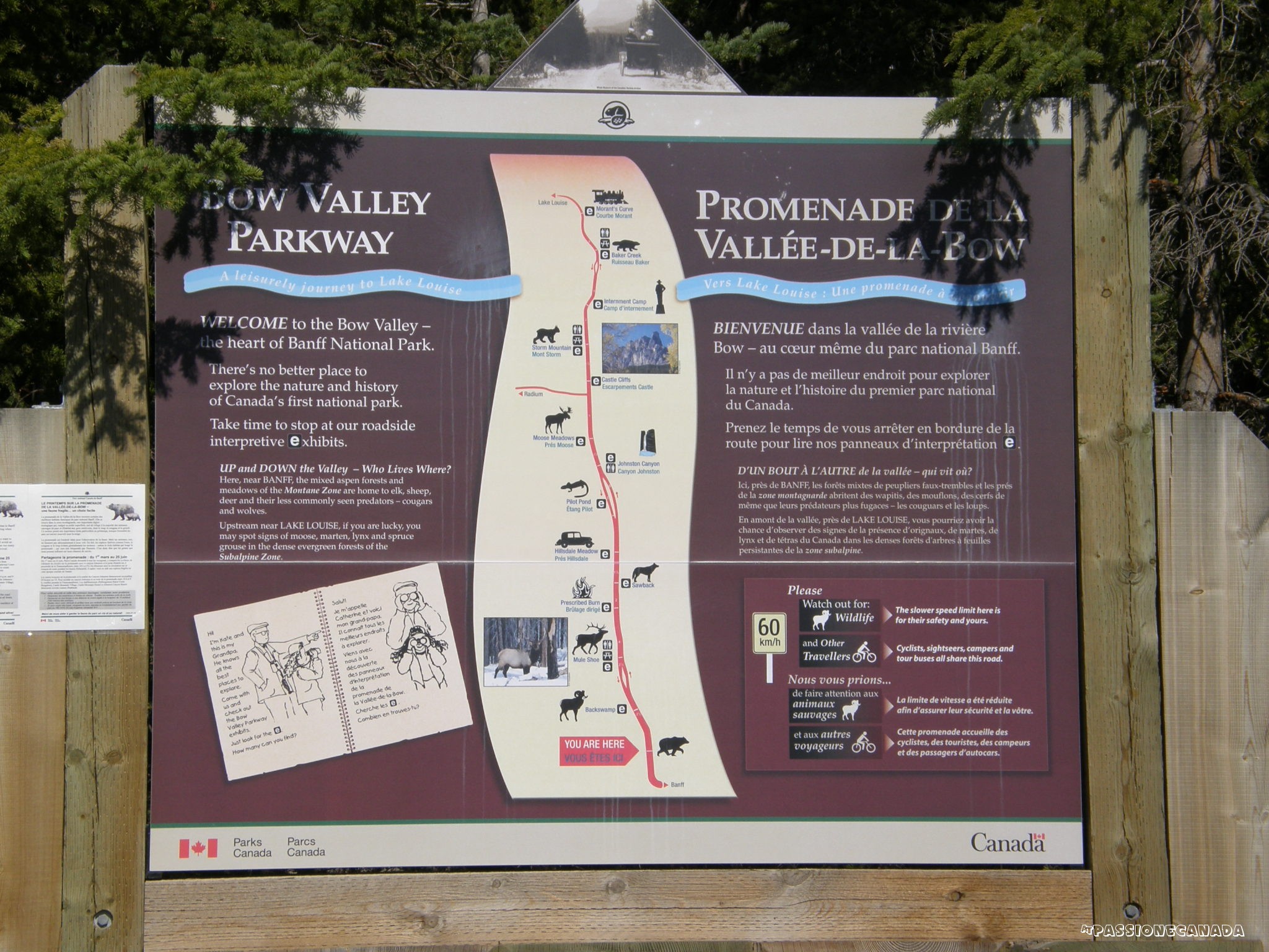 Finita la visita della zona di Banff, potete scegliere di riprendere la Trans-Canadian Hwy oppure prendere la più discreta Bow Valley Parkway, una fantastica strada che attraversa boschi di conifere, e sulla quale sono certi incontri ravvicinati con i più fantastici animali selvaggi delle montagne rocciose.