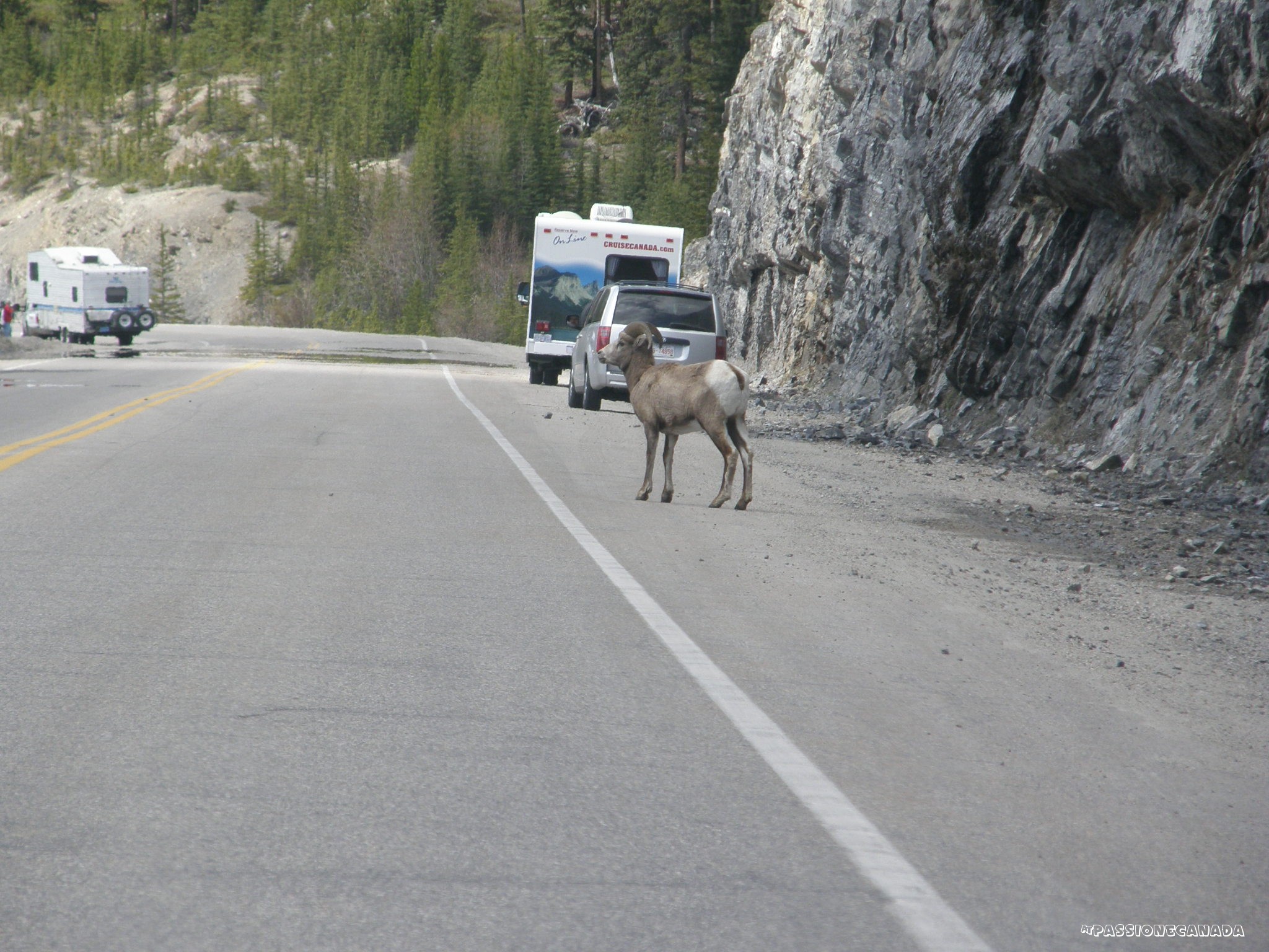 Per essere precisi le BIG HORN SHEEP. La strada è invasa! Bellissimo! Adesso bisogno solo aspettare che si spostino.. altrimenti stiamo qui fermi … all’infinito eehehe!