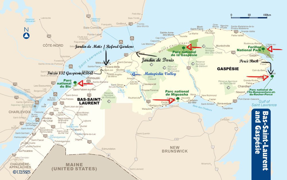 Come si vede dalla cartina, sono 4 i maggiori grandi parchi nazionali che si possono visitare nella Gaspèsie: