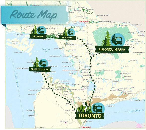 Nel 2010 un gruppo di appassionati di “outdoor” hanno ascoltato tutte quelle persone che, come ho citato in precedenza, non amano/possono spostarsi in auto, e quindi hanno pensato come rendere accessibili i meravigliosi luoghi della provincia dell’Ontario via BUS. Semplice e geniale.